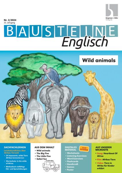 In dieser Ausgabe lernen die Schüler/-innen bis zu 24 imposante, wilde Tiere Afrikas kennen. Die Schüler/-innen beschäftigen sich gesondert auch mit den Tiergruppen der "Big Five" und der " Little Five" . Dabei wird mit diversen Übungen zu Wortlaut, Schriftbild und zur einfachen Grammatik der neue Wortschatz erforscht. Methodisch-didaktisch vielfältige kreative und spielerische Übungen regen zum Sprechen an, schulen das Hörverständnis und fördern das interaktive Handeln in einer fremden Sprache. Diese Ausgabe passt auch ideal in den Kontext von BNE (Bildung für nachhaltige Entwicklung bzw. Education for Sustainable Development)