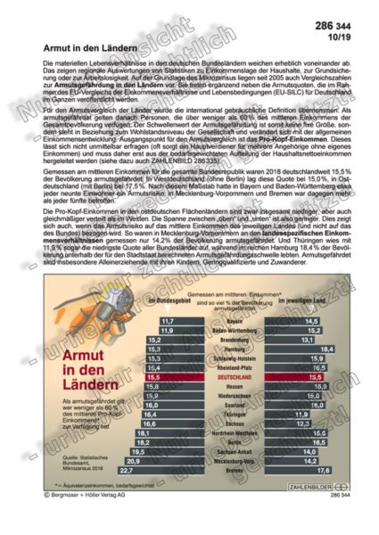 Als armutsgefährdet gilt, wer weniger als 60% des mittleren Einkommens der Gesamtbevölkerung erzielt. Aber woran wird gemessen? Am mittleren Einkommen ganz Deutschlands oder an dem des eigenen Bundeslandes? Je nachdem, welcher Maßstab verwendet wird, fällt das Ergebnis ganz unterschiedlich aus.